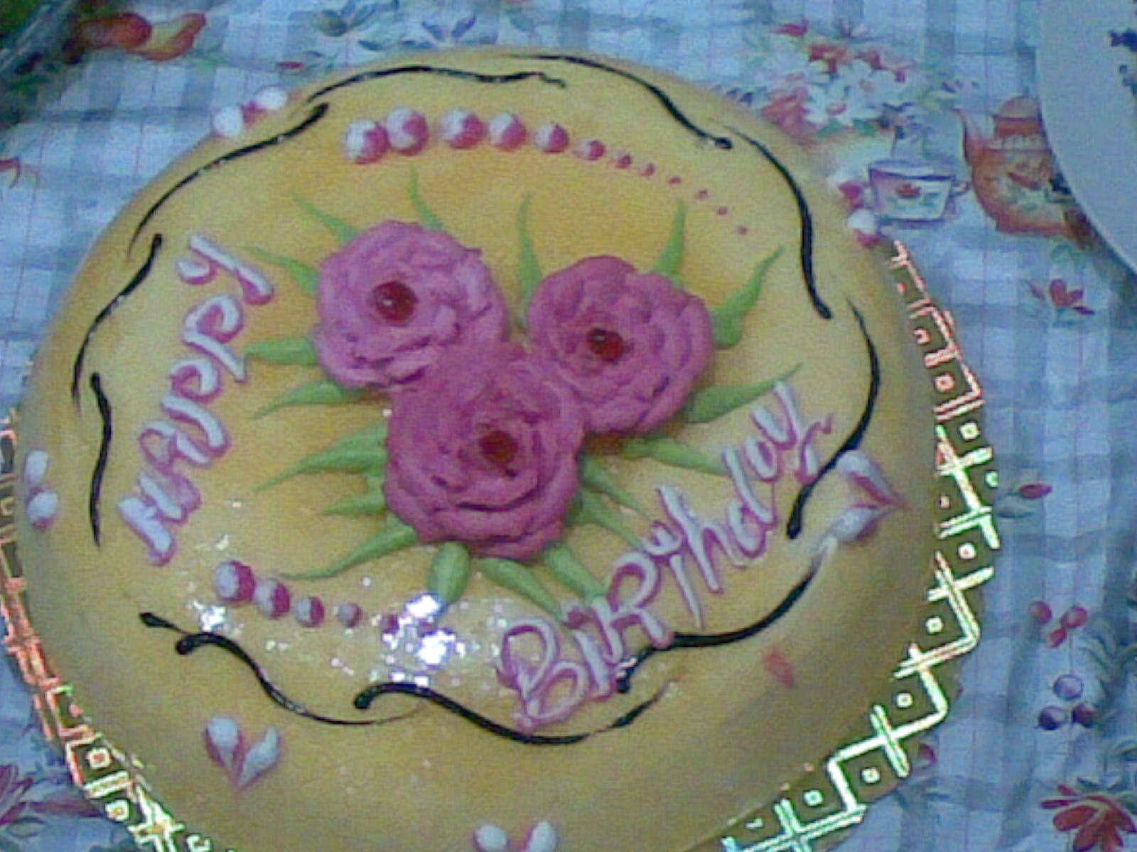 اینم کیک تولد ننه ام که دست داداش و زن داداشی درد نکنه خریده بودن و جای همه خالی حسابی هم خوشمزه بود [نیشخند]